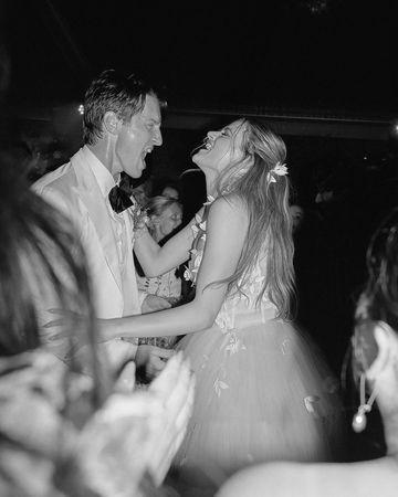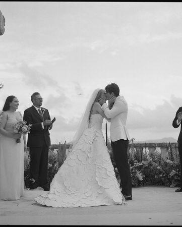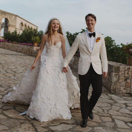 乔伊金身穿雪白花瓣婚纱搭配长头纱,在西班牙举行婚礼。(图/翻摄自IG/Joey King)