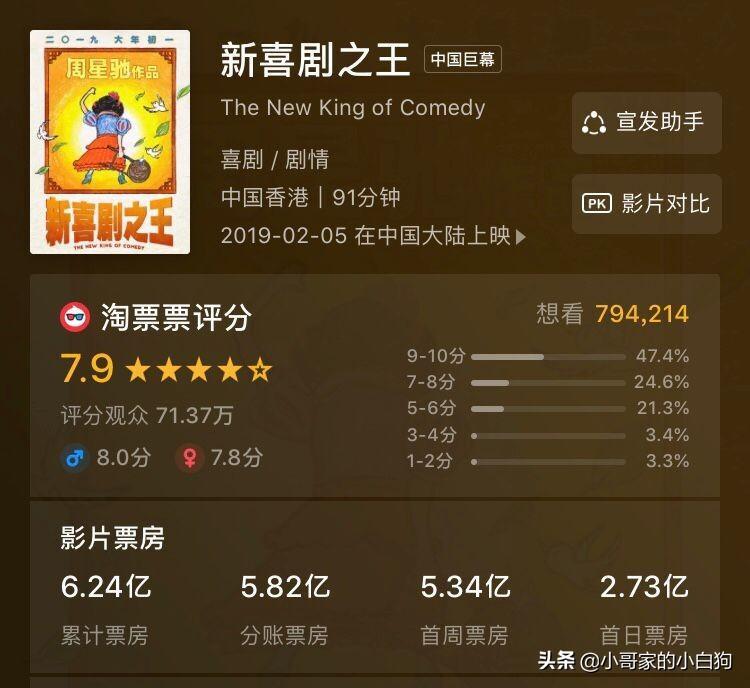 周星驰提起这个名字相信很多观众都不会陌生,周星驰被誉为80,90年代的喜剧之王,以其无厘头的搞笑风格成就了很多经典的作品,给观众留下了一个又一个记忆深刻的角色,后来由于种种原因星爷离开影视的视野,再回来的时候就已经是一名导演了,其不仅出演的《喜剧之王》《大话西游》身为经典,导演的《美人鱼》《西游降魔篇》也让观众看到了他的才华,前不久春节档星爷推出新作《新喜剧之王》由王宝强领衔主演,但截至到今天票房仅有6.24亿,并且受到了许多人评论豆瓣评分仅有7.9分,不少人甚至认为星爷是江郎才尽了!