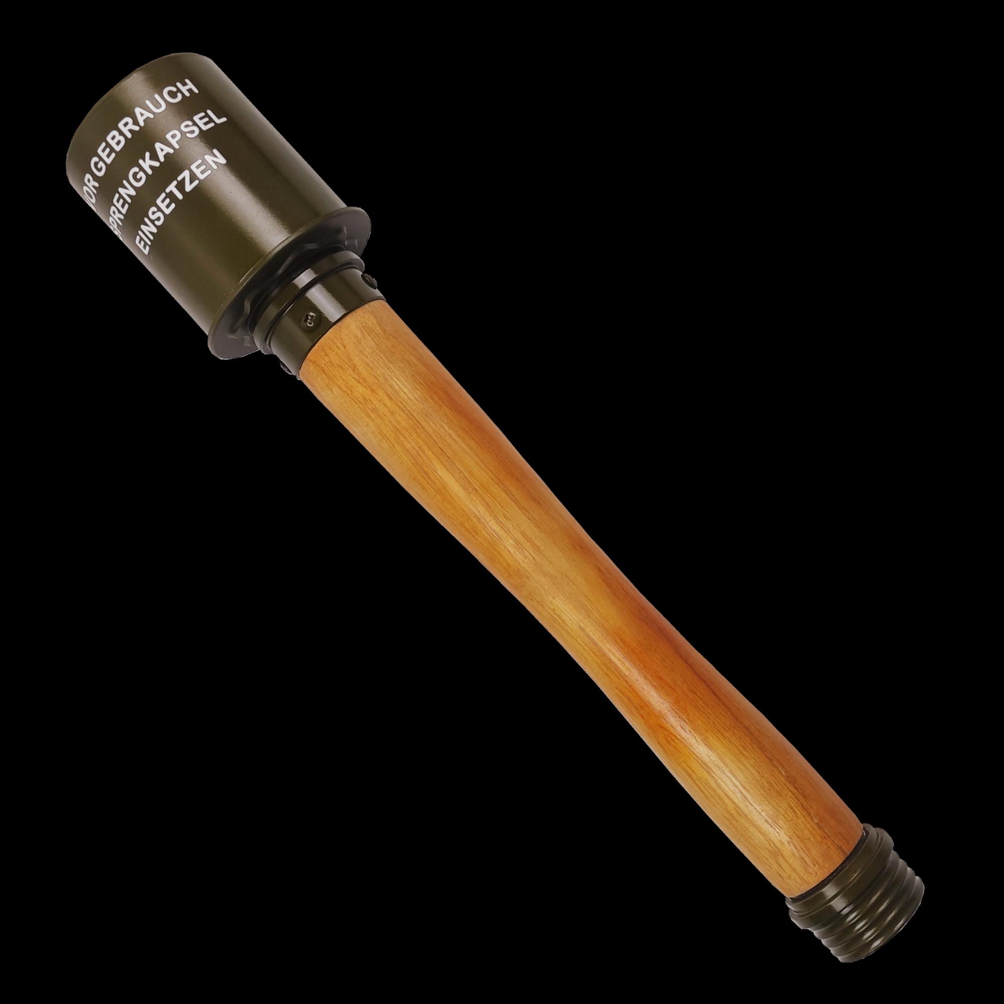 M24手榴弹在1924年定型生产,它的原理是弹壳采用薄钢版冲压而成,内部装填TNT炸药,并将dance体安装在一个木质手柄上,依据杠杆原理,M24手榴弹可以比圆形卵形的投掷的更远,在二战士兵照片中,德国士兵以手持98K,MP40,MP38腰插M24木柄手榴弹,或者在靴子里面塞着M24手榴弹的经典形象。